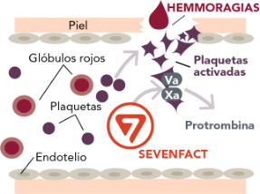 Cuando se inyecta, SEVENFACT activa los factores en la cascada de coagulación