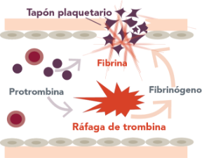 Esta “ráfaga de trombina” refuerza el trombo hemostático, creando un coágulo fuerte y duradero